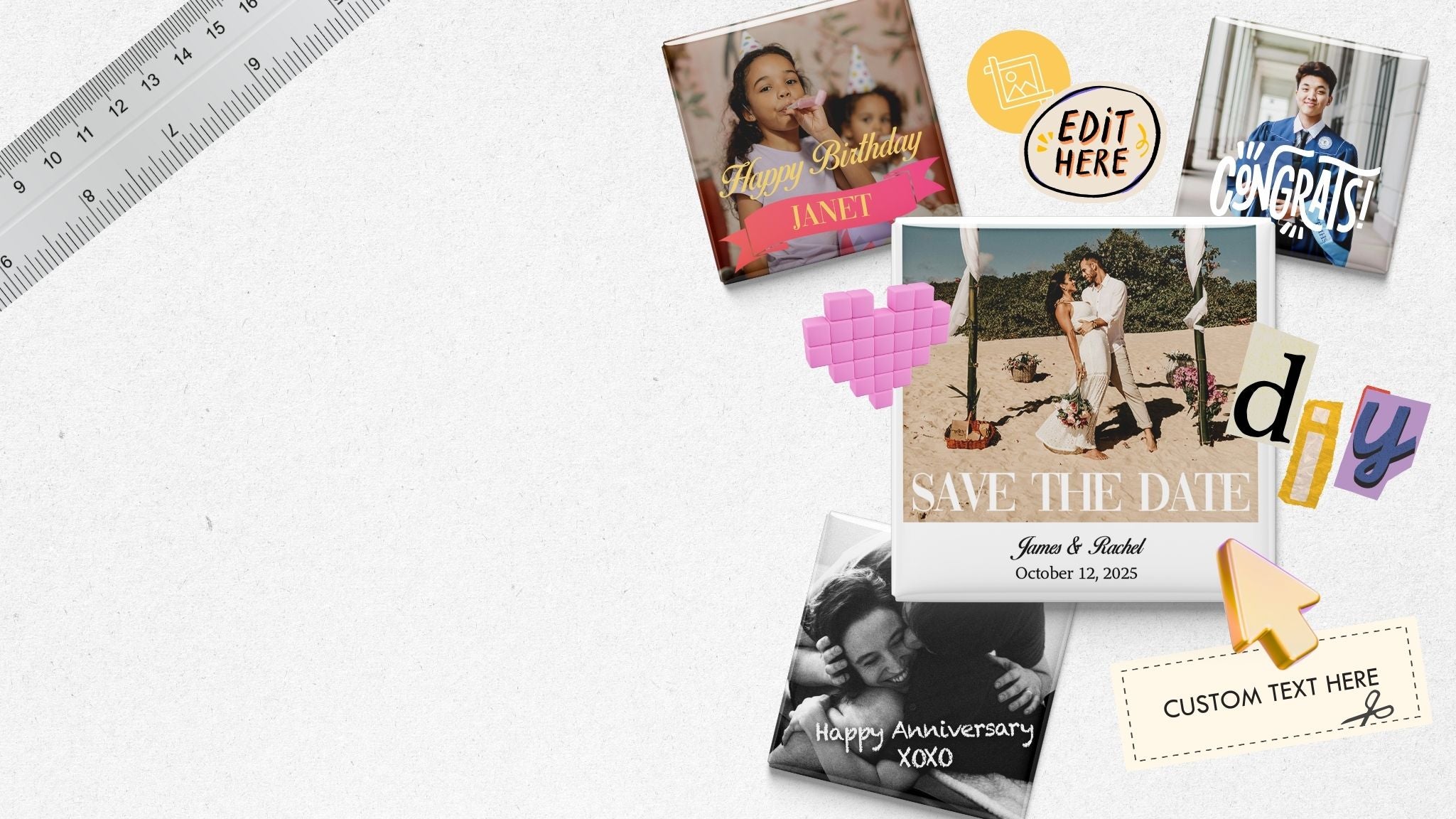 Looking for a specific style or layout? Send us your images and design requests, and we’ll take care of the editing for you. Your magnets, exactly how you want them.